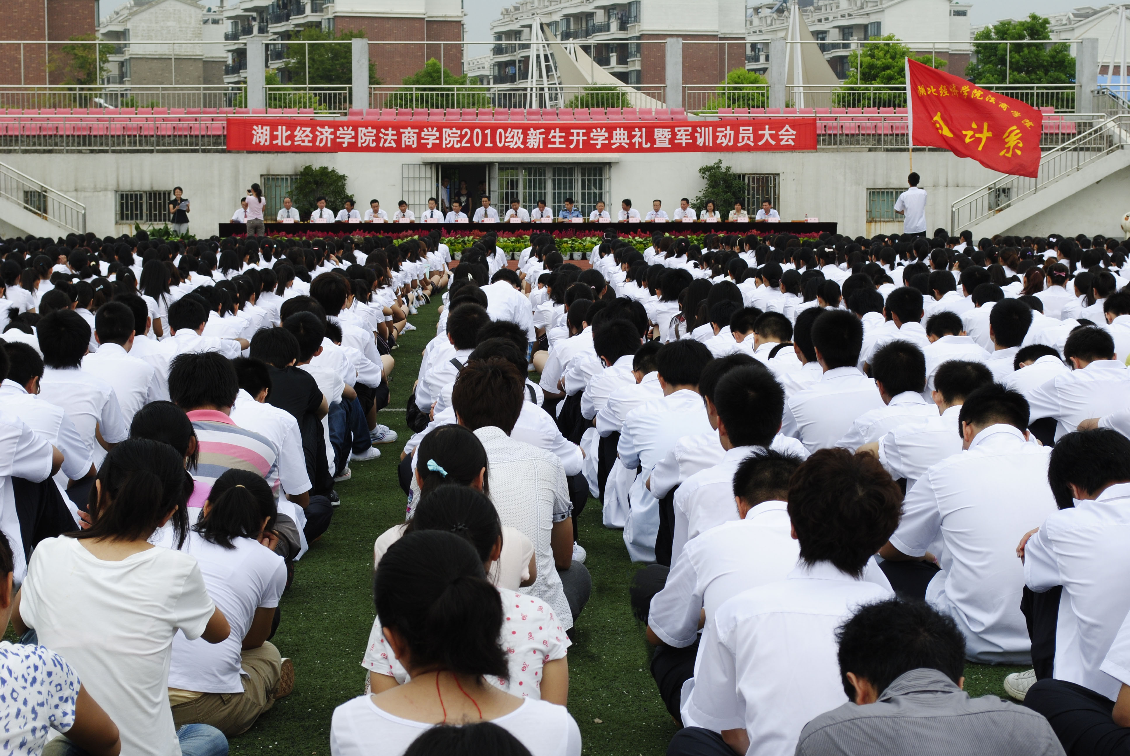 本网讯(记者 何文敏 摄影记者 陈忆雯 高嵩 陈岩 徐衍 谢安娜) 9月7日上午,我院2010级新生开学典礼暨军训动员大会在西区足球场隆重举行。湖北经济学院副院长、法商学院董事长吴少新,法商学院领导易作焕、曾海燕、王厚生、刘冶、黄华和承训部队空军雷达学院刘方少校以及各系主任在主席台就座,部队官兵和3100余名新生参加大会。