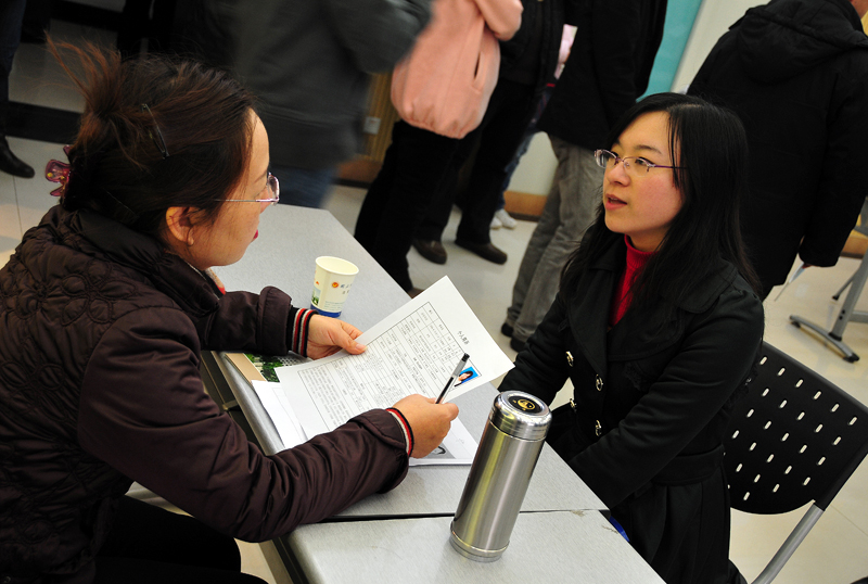 现场最火爆的是常州博大木业有限公司招聘处,该公司招聘董事长秘书1名和助理1名以及外贸员2名,虽然对性别和专业要求极高,但还是挡不住学生们对岗位的向往。该公司负责招聘的工作人员告诉记者,他们招聘并不看重经验,因为刚毕业的大学生要求他们有经验不太现实,但是应聘者须有良好的专业素质。对于有些专业跨度太大的应聘者会直接拒绝。因为公司需要的是能够稍微指点一下就可以胜任工作的人。