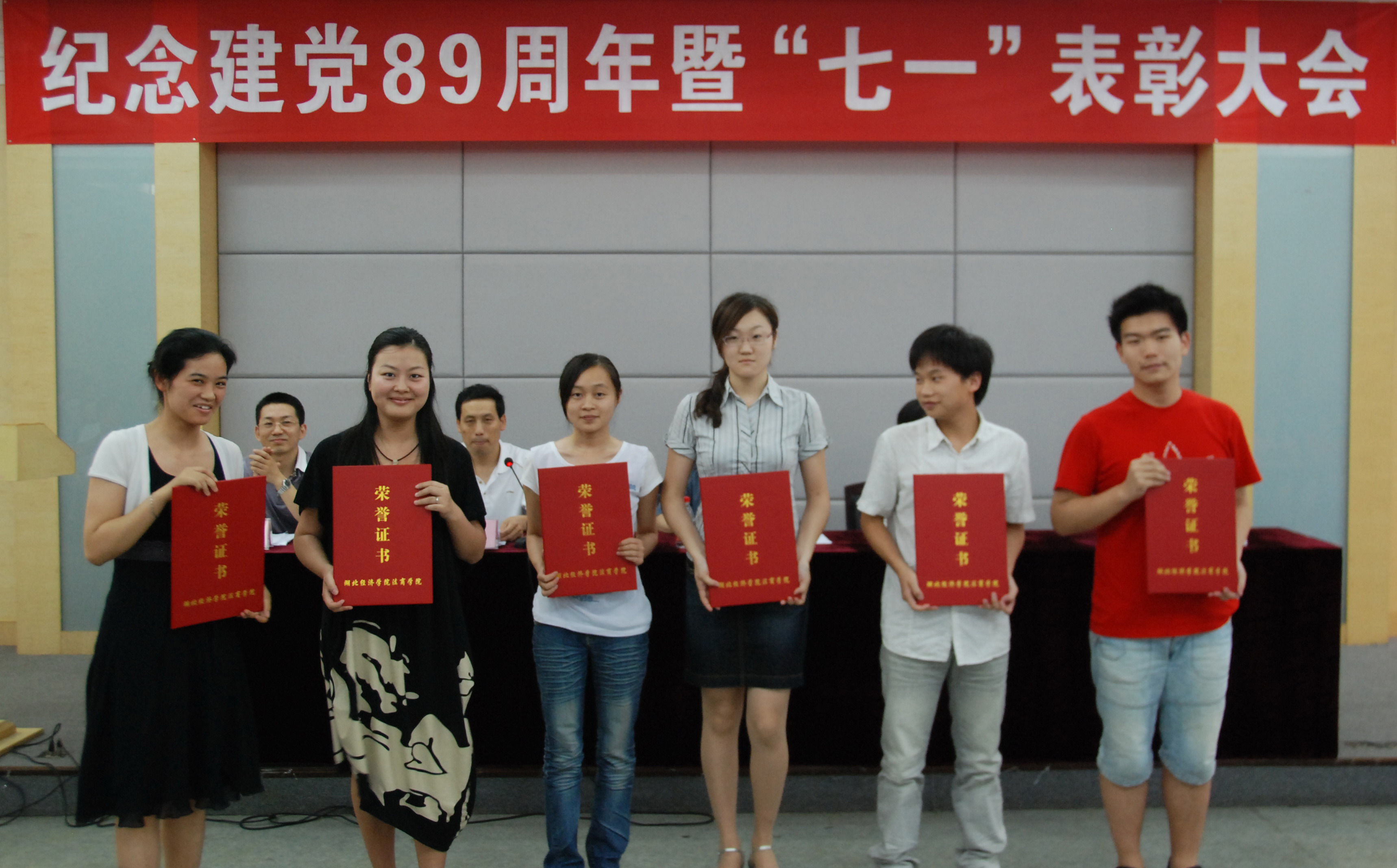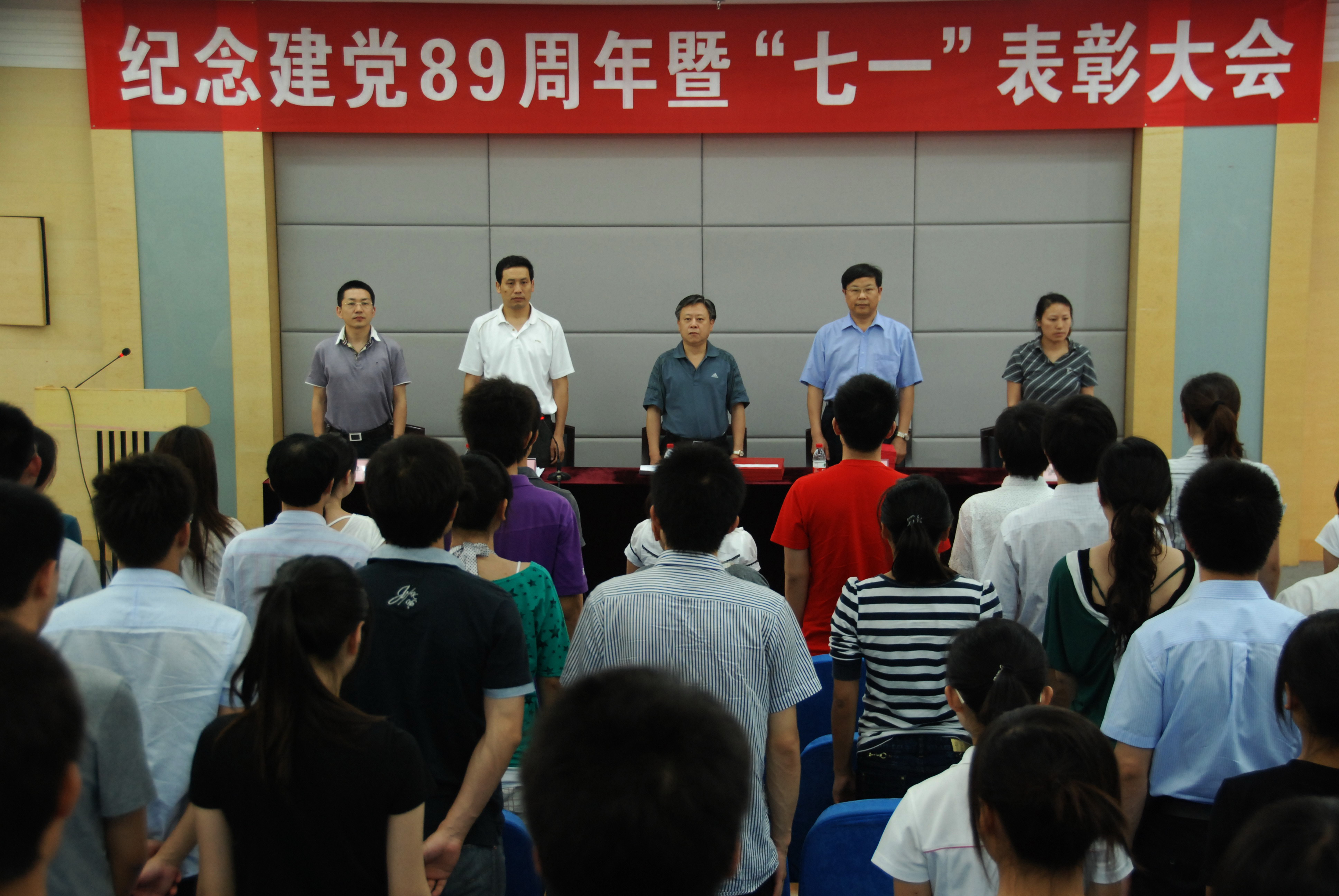 本网讯(记者 赵璐 李钢 高嵩 徐衍) 6月23日,学院纪念中国共产党诞辰89周年暨“七一”表彰大会在学术会议中心四号报告厅隆重举行。学院党委书记曾海燕、院长易作焕、党委副书记王厚生、副院长黄华、党委委员洪珍出席大会。学院全体教工党员、学生党员代表以及受表彰的先进党支部、优秀共产党员、优秀党务工作者参加了表彰大会。党委副书记王厚生主持表彰大会。