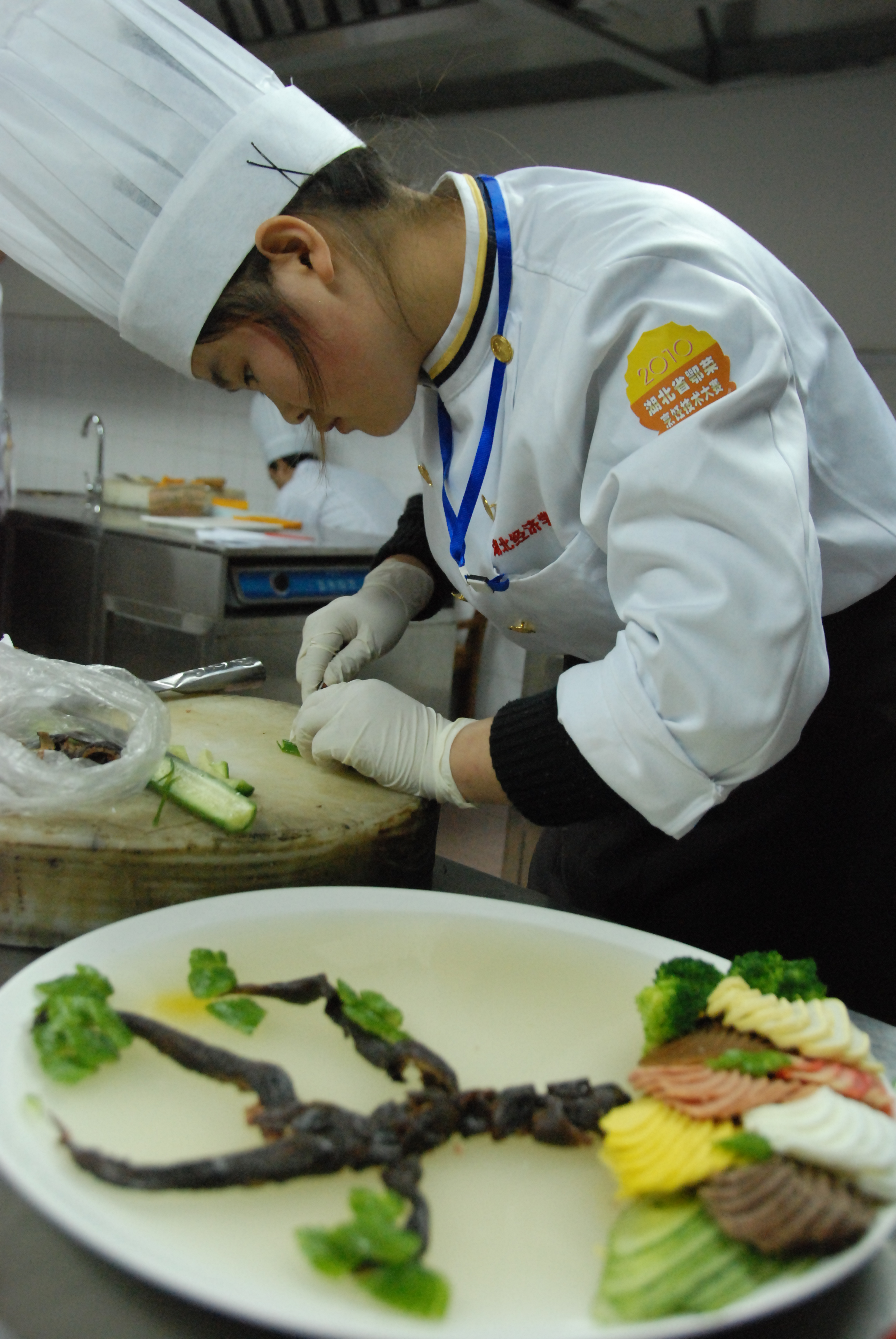 比赛包括中式烹调、中式面点和餐饮服务三个工种,面点、雕刻、冷拼以及热菜四种类型。