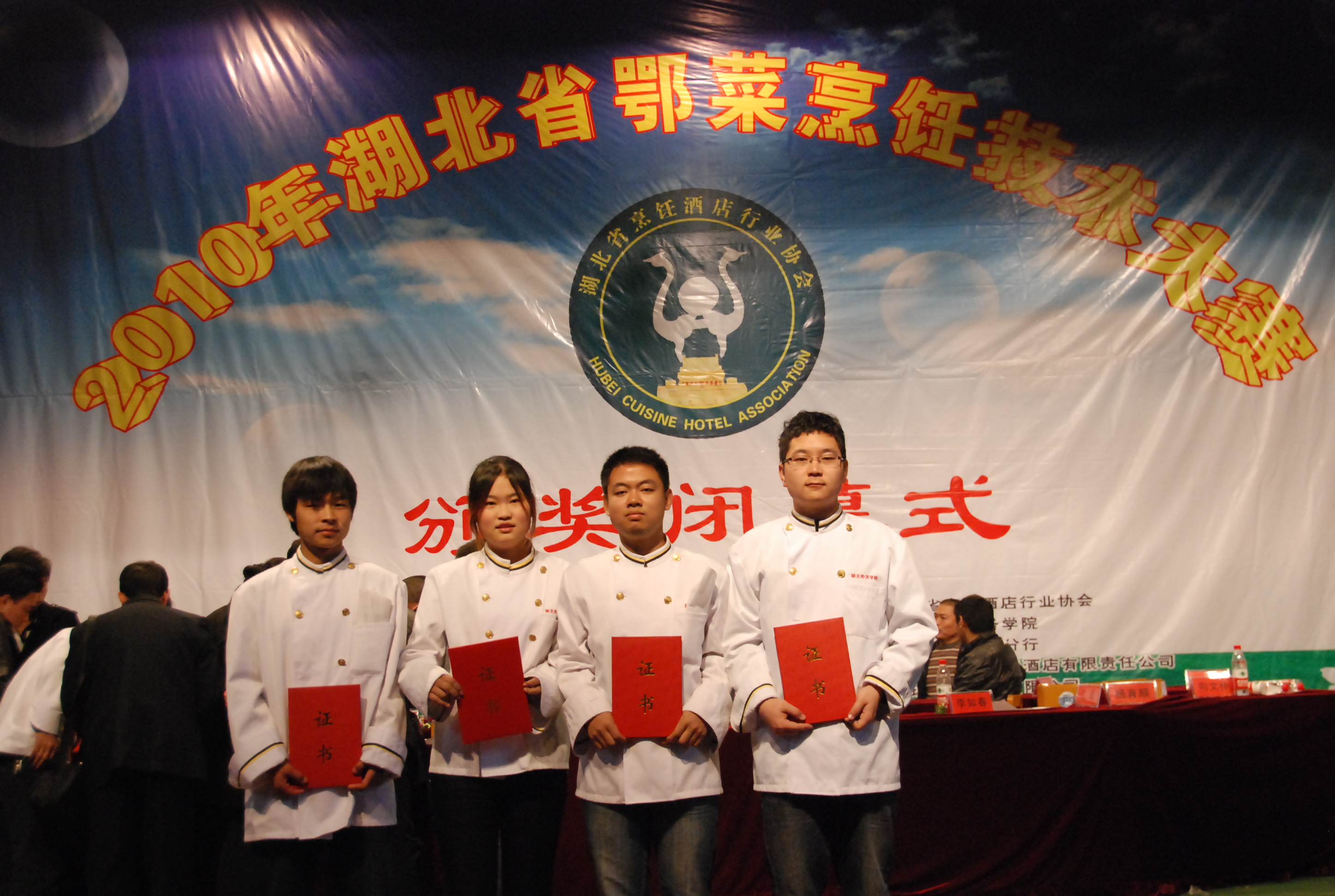 本网讯(通讯员 李钢) 12月22日,我院烹饪09301班的4位学生参加了“湖北省鄂菜烹饪技能大赛”。在学生组的比赛中,我院秦峰、吴振同学分别获得金奖、银奖,徐�、李杰同学获得铜奖。