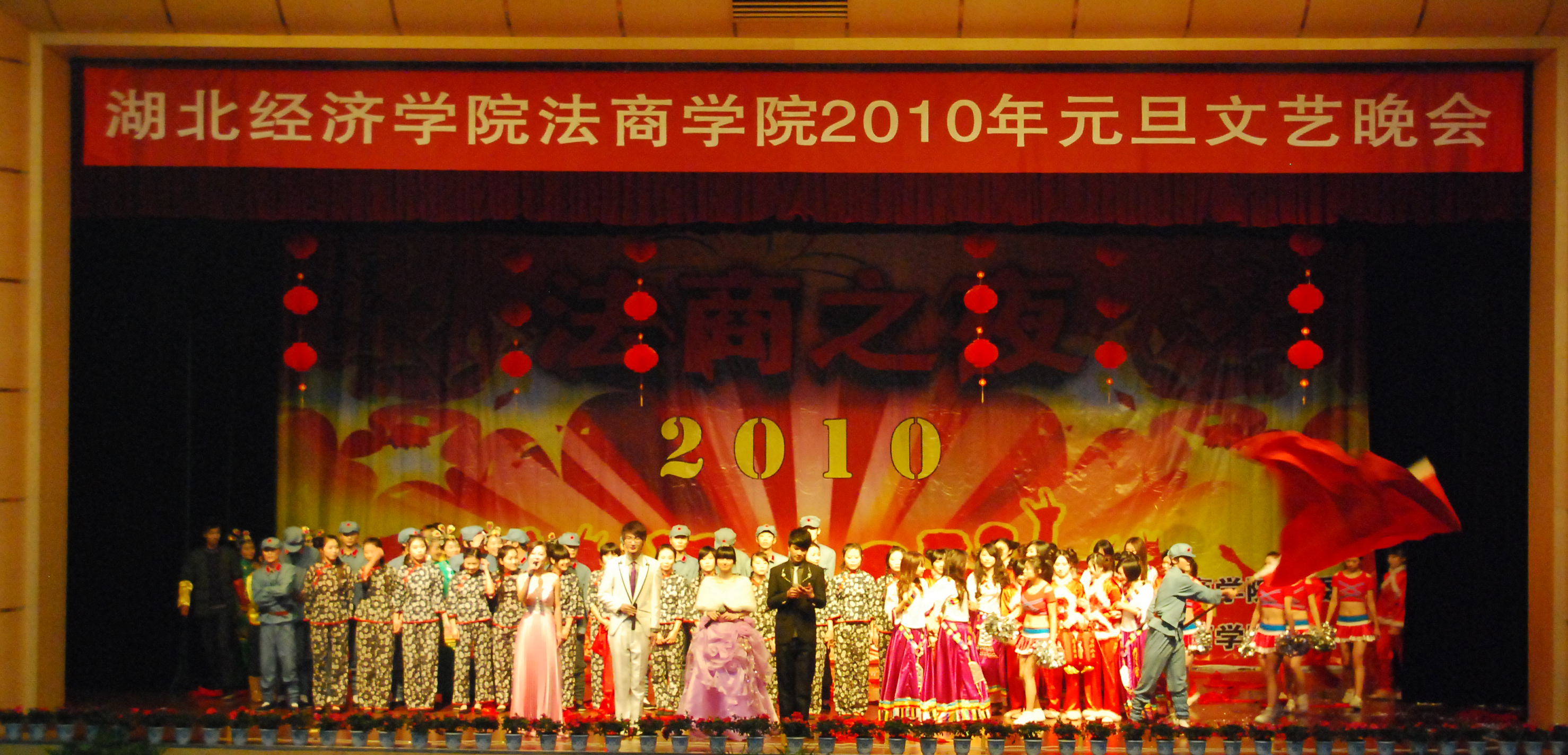 本网讯(记者 陈波 戴锦燕 摄影 李钢 高嵩 徐衍 陈忆雯 谢安娜) 12月28日晚,大学生活动中心一号报告厅座无虚席, 2010年“法商之夜”元旦文艺晚会在这里激情上演。法商学院院长易作焕、党委书记曾海燕、副院长黄华及1500余名学生观看了晚会。